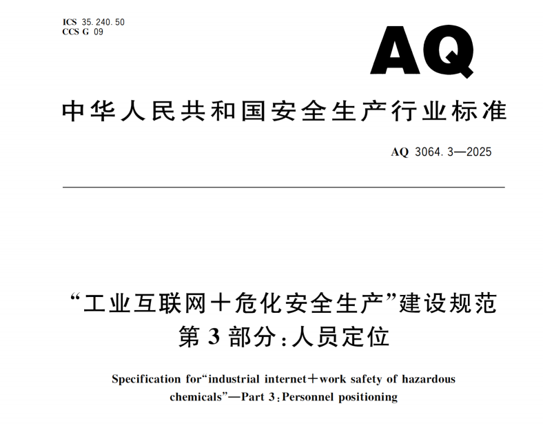 2026年1月4日,應急管理部正式發布《“工業互聯網+?;踩a”建設規范 第3部分:人員定位》(AQ 3064.3-2025),并將于同年7月1日起強制執行。這一標準的出臺,是?;踩a領域從“事后追溯”向“事前防控”轉型的關鍵舉措。